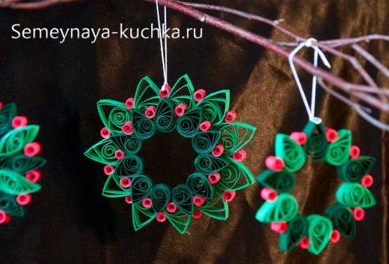 А еще бумажные полоски можно скрутить – в жгутики скрутки. И тогда мы получим крученые модули для квиллинг-поделки. Из модулей складываем зеленые новогодние венки, или елочки и нанизываем эти поделки на гирлянду.