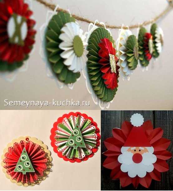 А еще можно сделать круглые веера (как на фото ниже). Как они делаются я подробно рассказывала в статье «Новый Год из бумаги»
