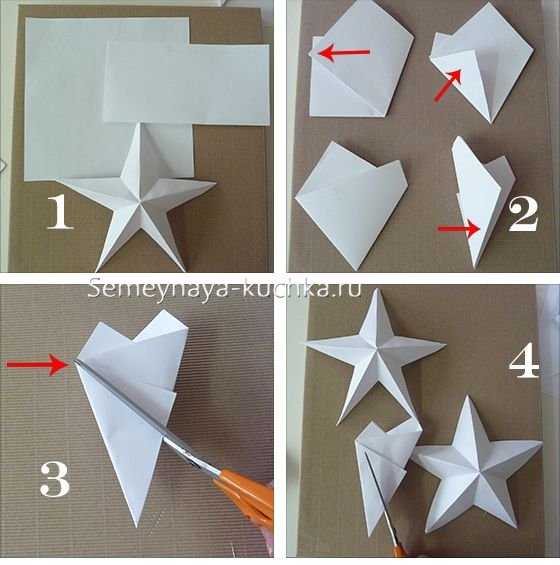 А вот самый простой способ быстро сделать звезду из бумаги – с уже готовыми сгибами для рельефных ребер (чтобы звезда сразу имела выпуклый объем).