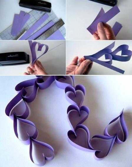 В картинках подробная инструкция как собирать гирлянду сердечно.