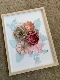 Выбираем подходящую рамку, если есть стекло, убираем его. Подбираем подходящий лист бумаги с цветочным мотивом, лист для фона и лист с рисунком под дерево.
