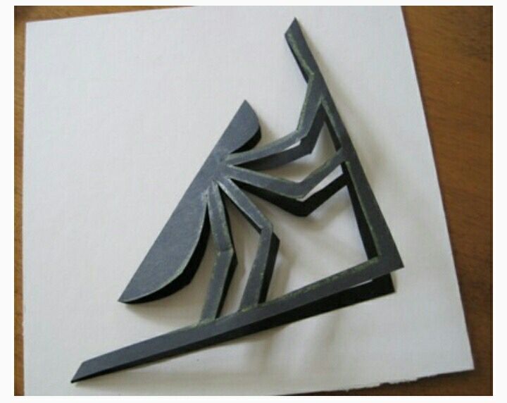 Складываем лист пополам, как нарисовано, берем ножницы и вырезаем паука.