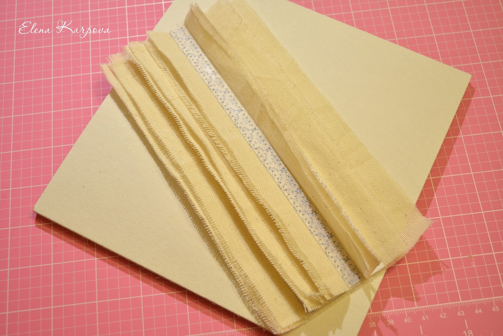 Под нее подклеиваю корешок и сверху приклеиваю ткань.