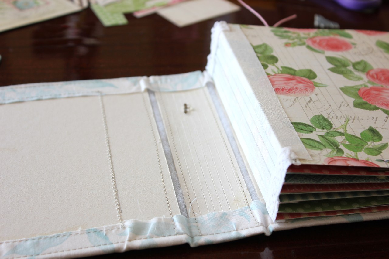Можно использовать тканевый переплет для скрапбукинг-альбома, но большей популярностью пользуется прошитый вариант. Технология выполнения обоих видов фактически одинаковая, но есть некоторые нюансы. Например, при выполнении прошитого переплета для альбома-скрапбукинга следует дополнительно прошить слои на швейной машине.