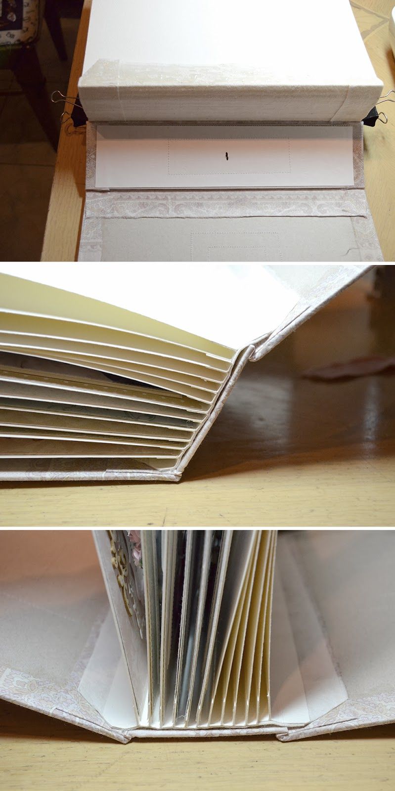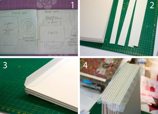 Сначала клею все страницы из картона, складывая переплет в одну сторону.