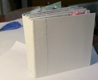 Когда альбом высохнет и вы добавите какие-либо детали к обложкам, вы можете начинать добавлять страницы.Если вы хотите, чтобы страницы хорошо изгибались, вы можете слегка надрезать их папкой с костями по краю поля для переплета.