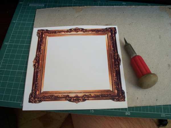 Я выбрал вторую. Дальше идём в КорелДрав, вставляем в чистый документ рамку, поверх неё рисуем квадрат с размерами нарисованной картинки. Ну и подгоняем рамку так, чтобы квадрат заходил за её края на 2-3 мм. Печатаем это дело на фотобумаге в хорошем качестве. Я напечатал сразу две — ещё одну потом нарисую.