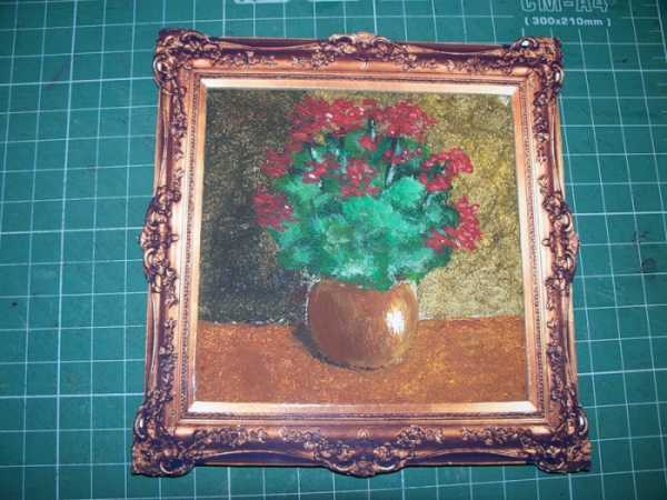 - Сама картинка. Я нарисовал герань но одному из уроков в интернете на картоне 10х10 см акрилом.