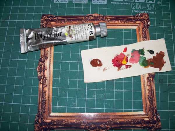 - Акриловая краска. Я использовал коричневую — как нейтральную по отношению к цвету самой рамки — для покраски торцов.