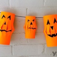 Почему бы не поселить у себя дома несколько добрых (или не совсем) привидений, сделанных своими руками. Ничего сложного в этом нет, вам только потребуется марля, раствор крахмала или клей ПВА. Марля неаккуратно обрезается по краям, смачивается в растворе или клее, и сушится на подходящем по форме предмете, дабы принять очертания привидения. Можно для этих целей использовать шарики, пластиковые стаканчики или банки. После высыхания можно дорисовать или наклеить глазки.