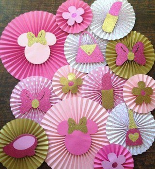 Если нет – сложите бумагу ровненькими гармошками. Сформируйте из гармошек полукруги.- Вырежьте полоски, кружочки, треугольники или еще какие-то фигурки из цветного картона – они Вам пригодятся для украшения вееров.