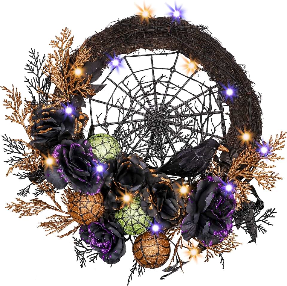 # 11 Жуткий венок из черной розыЕсли вам больше по душе гламурный венок на Хэллоуин, то эти великолепные черные розы и вороны идеально подойдут для вашей входной двери.