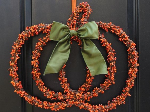 Закрепите веточки с сухими листьями, искусственные тыквы, натуральные ягоды и цветы с помощью проволоки для флористики и украшение будет радовать вас и после 31 октября.