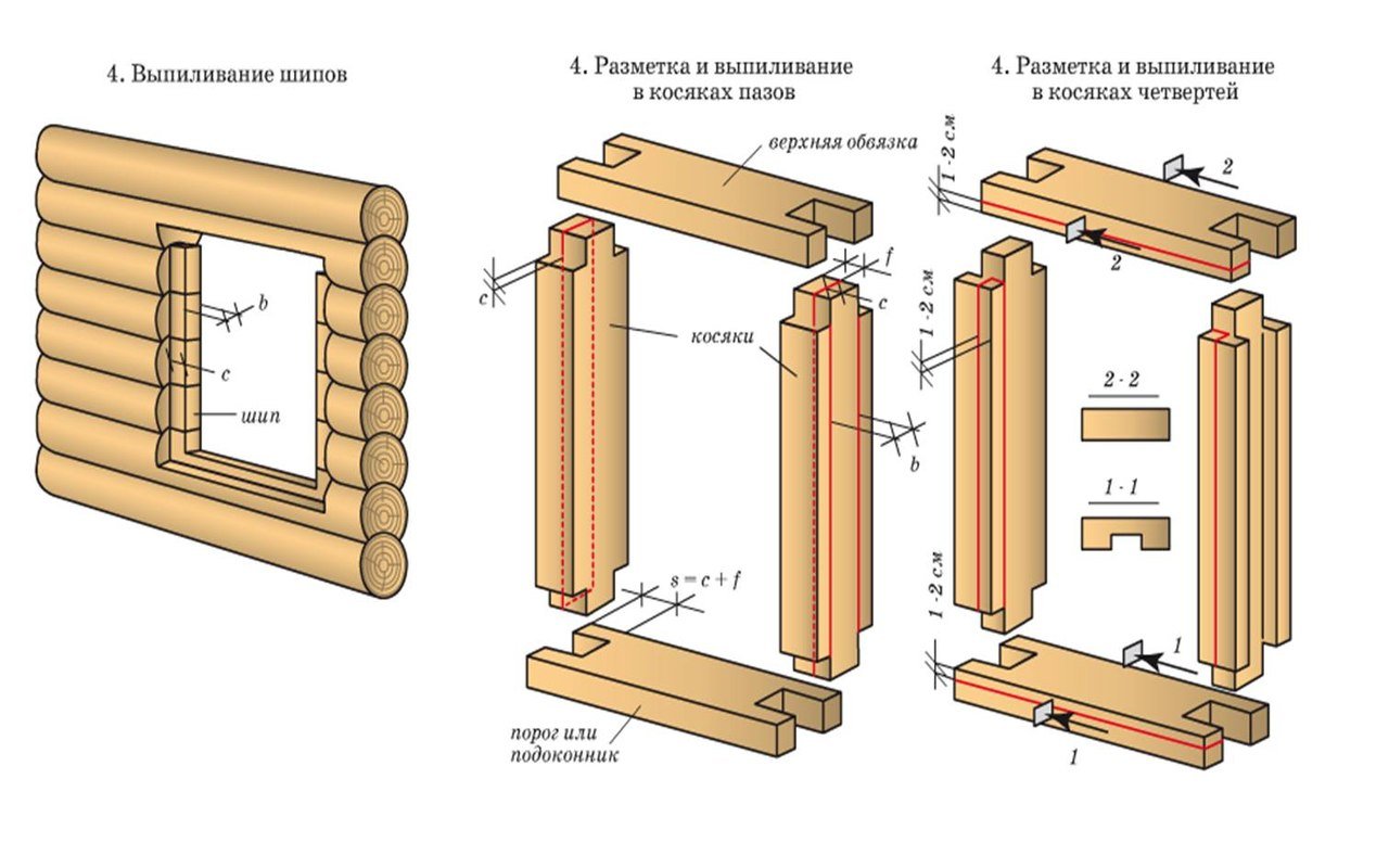 Для обеспечения надёжной защиты от утечки тепла из четырёх брусков сооружают прямоугольную раму, которая будет служить коробкой для двери. Вертикальные стойки станут петельным и притворным элементом, а поперечные – верхней опорой и порогом.