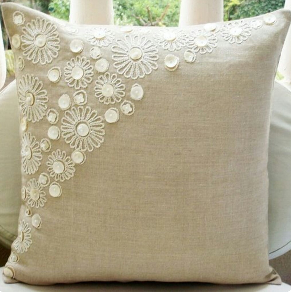 - Декор подушек вышивкой, пуговицами, тканью и прочим.
