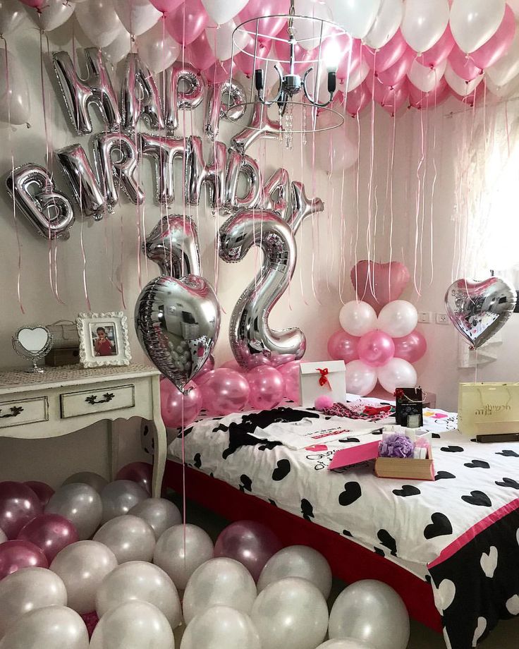 Украшение комнаты на день рождения дома воздушными шарами, лепестками роз, гирляндами в Джайпуре — Закажите сейчас Украшение комнаты в Джайпуре!