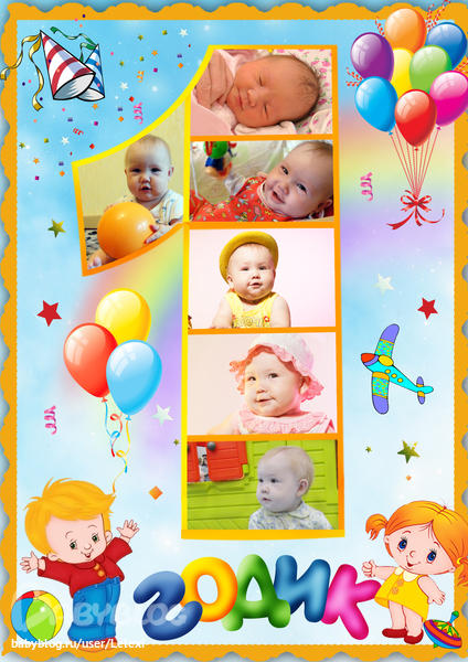 Ведь в первый год кроха растет очень быстро и не у всех была возможность наблюдать за этими завораживающими изменениями. Поэтому большой популярностью пользуются плакаты с фотографиями ребенка, сделанными в каждом месяце прошедшего года, начиная от рождения и до годовщины.