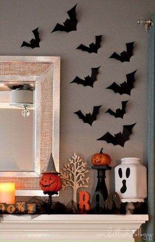 Еще одним интересным элементом Хэллоуина становятся летучие мышки. Их можно сделать из картона, бумаги, тыковки, старых упаковок из-под яиц и так далее: