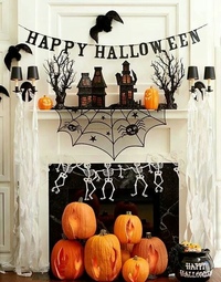 Дополнительное освещение можно организовать с помощью расставленных повсюду свечей. Если получится, приобретите еще и светящиеся гирлянды: горящие тыковки, черепа и паутины. Ими можно украсить как одну комнату, так и весь дом.