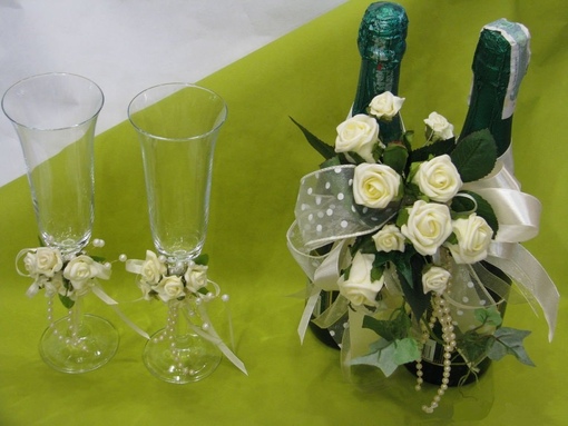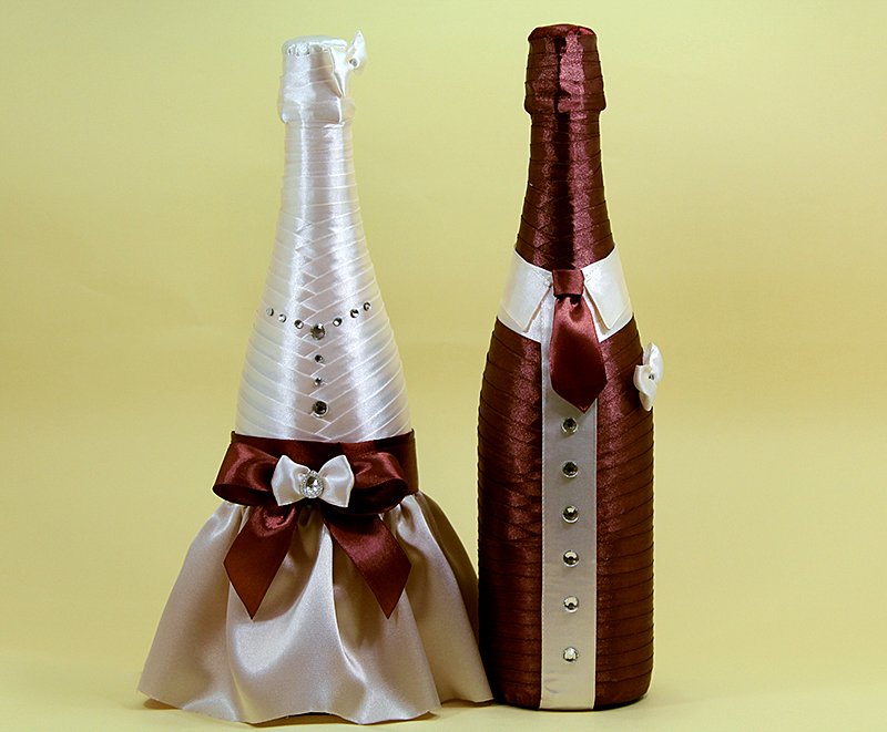 - Сшить одежду для шампанского, а именно, наряд жениха и наряд невесты.