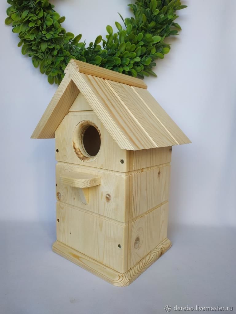 Чтобы обеспечить птичкам подходящие условия, домик изготавливают только из древесины. Птицы не приспособлены к жизни среди материалов, созданных человеком, а дерево наилучшим образом защитит от дождя и сохранит комфортную температуру внутри домика.