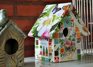 Собери и укрась скворечник из разбитого фарфора (мозаика)