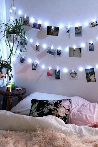 Декорируйте стену с помощью фотографий. Это могут быть старые семейные карточки, фото с последней фотосессии, распечатанные «квадратики» из Инстаграма – создайте коллаж, который интересно будет рассматривать.