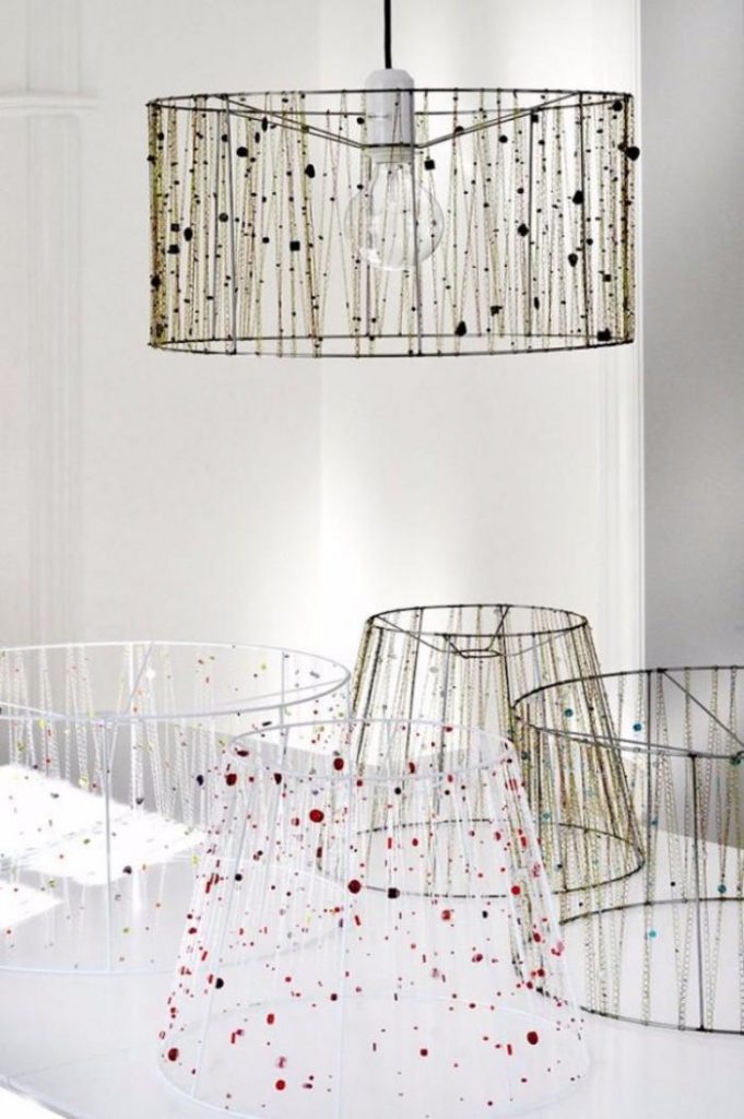 - Оформляем каркас, опираясь на свою фантазию. Это может быть техника макраме, а можно каркас дополнить черной либо серебристой проволокой и получится светильник в стиле хай-тек.