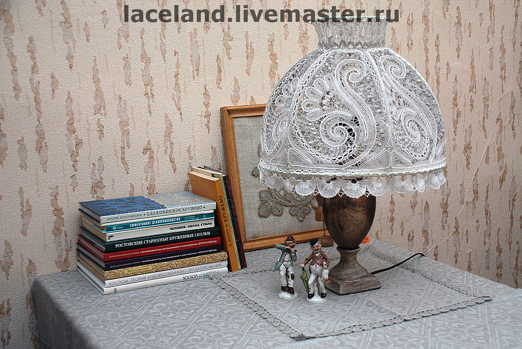 Еще одна идея создания абажура – из салфетки. Для этого вам необходимо иметь клей, ажурные вязаные салфетки и воздушный шарик. Далее берем салфетки и промазываем клеем, кладем их на воздушный шар и ждем полного высыхания. Шар можно проколоть или спустить, а к полученному абажуру прикрепить лампочку.
