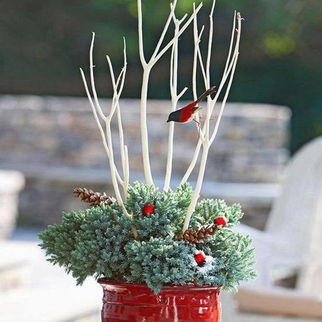 Альтернативой является использование искусственных цветов. У них есть преимущество в том, что оно более соответствует естественному виду зимы, а также помочь избежать хлопот сохранения живых цветов.