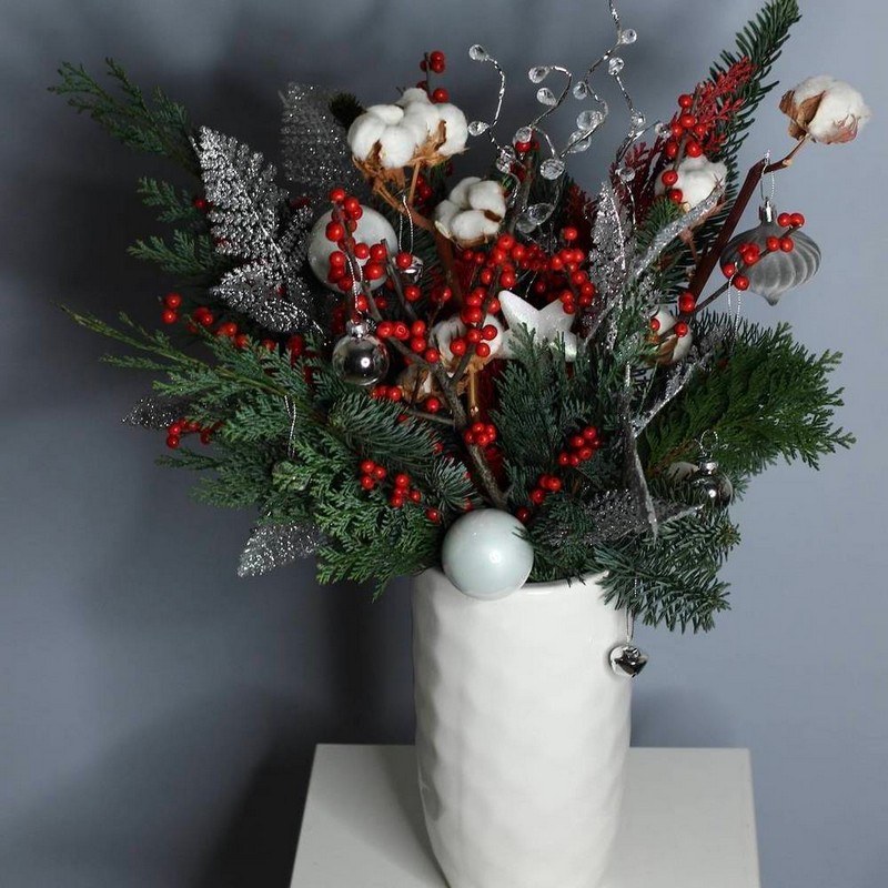 Как украсить ветки для зимнего букета: Зимний букет и рождественские композиции. мастер-класс