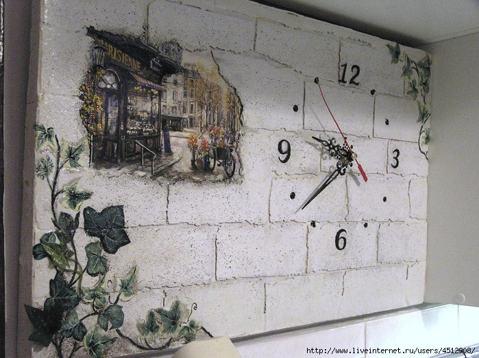 Имитация кирпичной кладки в стиле прованс с применением техники искусственного состаривания