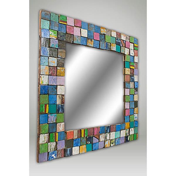 Украсить плоскую раму можно и плиткой или мозаикой. Плитку лучше выбрать разную — выйдет раскладка, напоминающая пэчворк.
