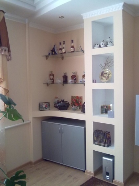 Конструкции есть различных форм, размеров. Это небольшое углубление для телевизора, под камин, для книг, фоторамок и так далее. Их производят как в ванной комнате, так в детских спальнях.