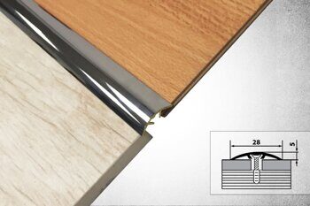 Металлические. На рынке имеются стальные и латунные пороги. Однако чаще всего их изготавливают из алюминия, декорированного различными способами:Порожки для ламината