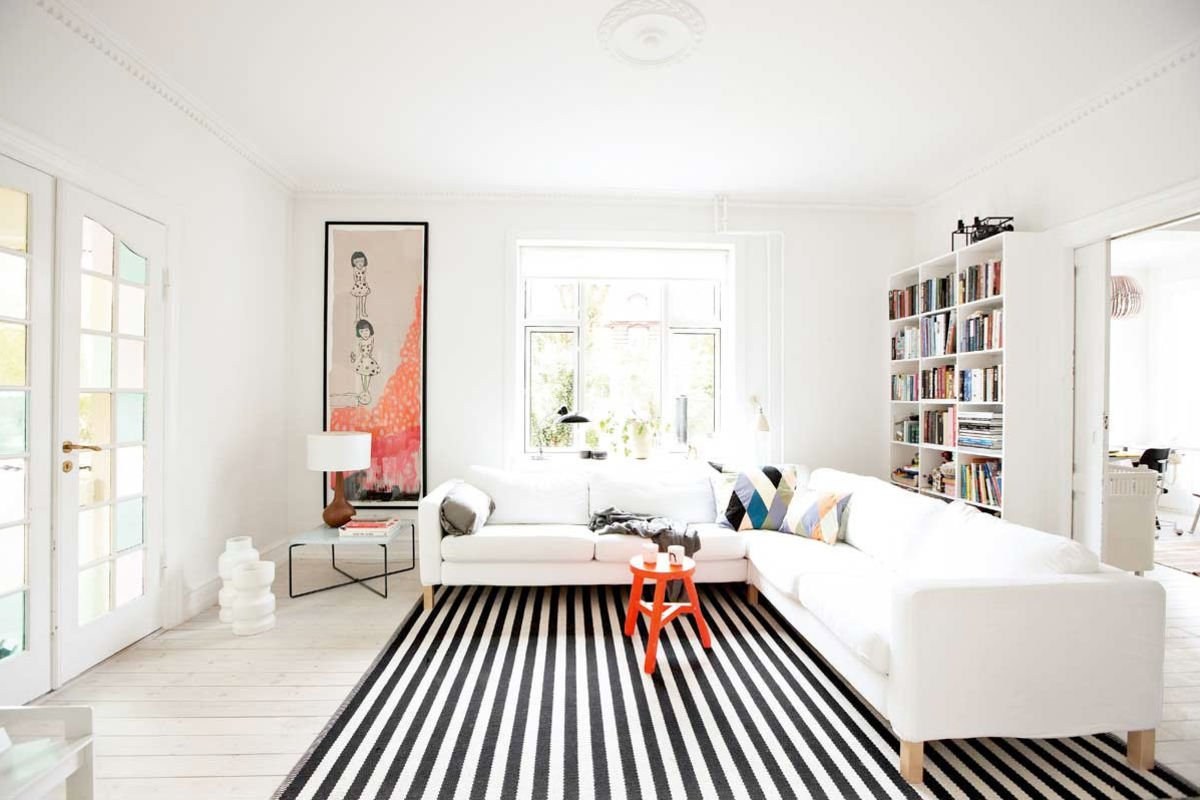 Известный и очень вкусный прием – это, конечно, полоски. Действительно, если вы расположите укладку напольных покрытий перпендикулярно длинным стенам и подчеркнете это полосатыми обоями на «короткой» стене, получится легкий, но заметный эффект расширения.