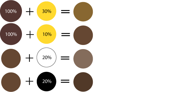 | Тёмно-коричневый | Жёлтый + красный, чёрный и белый |