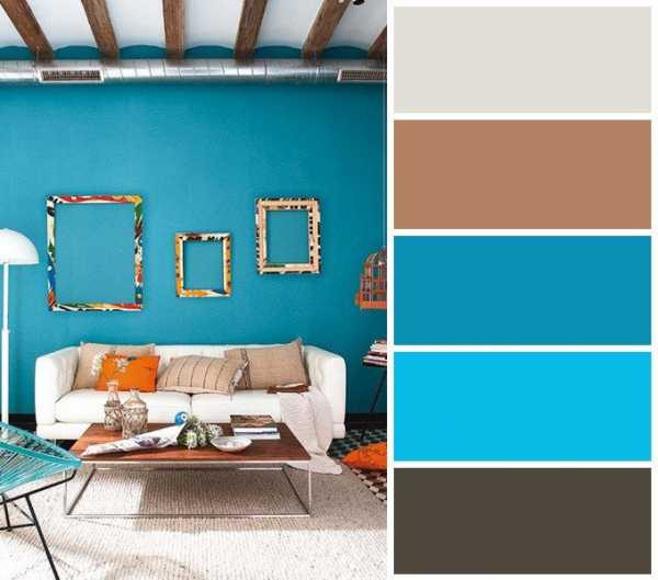 Бирюзовый цвет в интерьере гостиной