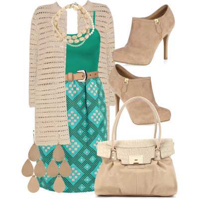 Соединив консервативную коричневую гамму с изысканностью и лёгкостью бирюзы, вы получите наряд не только для отдыха в кругу друзей или на природе, но и удачный вариант офисного дресс-кода.