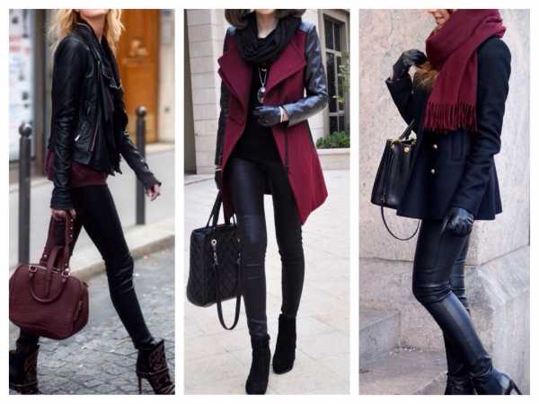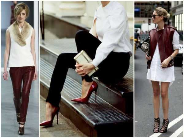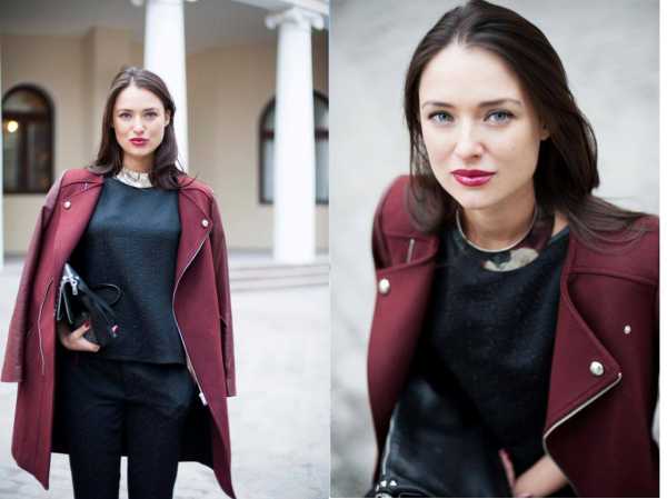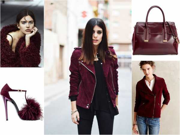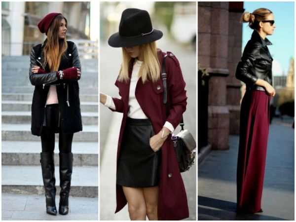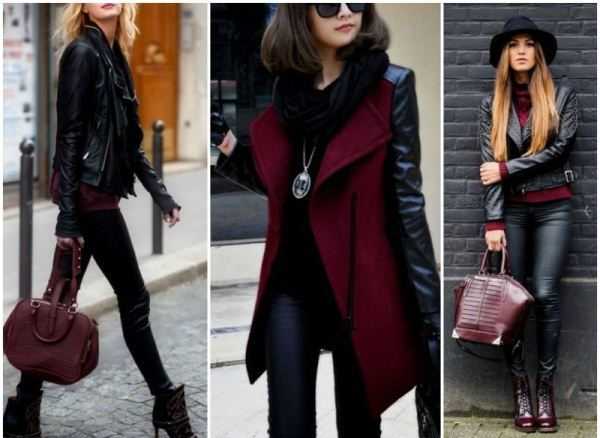 Для большей яркости образа с использованием черных деталей, лучше остановить выбор на более светлых тонах бордо.