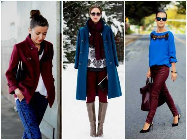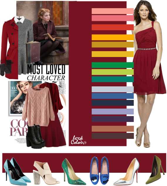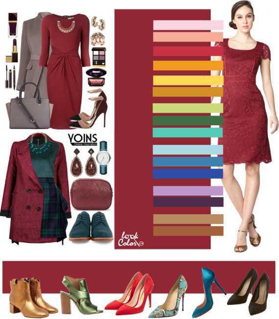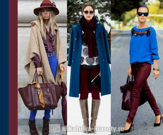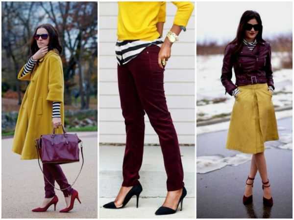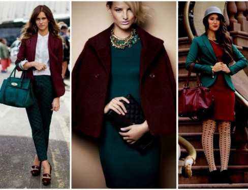 Не смотря, на такую объемную палитру комбинировать его с другими не так просто. Все дело в том, что какие-то цвета в наряде можно использовать наравне с бордовыми оттенками, а какие лишь в небольшом количестве в виде небольших акцентов (аксессуаров) — это скорее относится к ярким и насыщенным тонам.