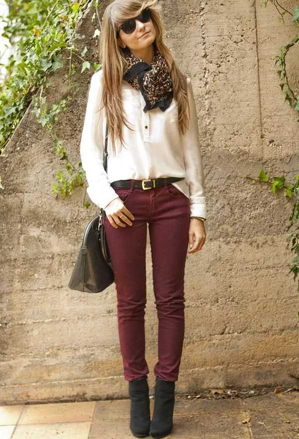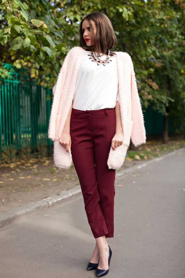 Девушки и женщины с более светлым оттенком кожи также могут использовать бордовые оттенки в своих образах, но уже в меньшем количестве, например в виде дополнительных вещей или аксессуаров.