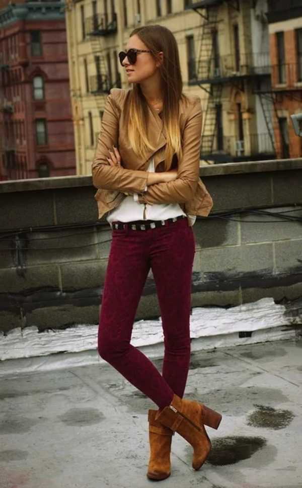 Бордовая одежда отлично гармонирует со множеством оттенков. Главное учитывать меру цвета, а также стиль одежды. Для каждого оттенка бордо подойдут свои цвета. Излишнюю яркость или наоборот мрачность комплекта можно разбавить, используя детали или аксессуары других цветов. Например, темный коричневый в сочетание с бордовым оттенком будет несколько мрачноват. Можно исправить данную композицию, добавив детали белого или светло бежевого цвета.