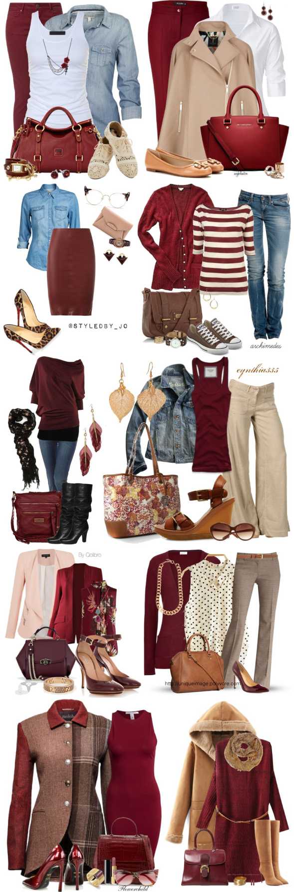 Сочетание бордового цвета наполненный энергией и женственностью. Каждый оттенок этого тона комбинируется по-разному. Примеры. Aото.