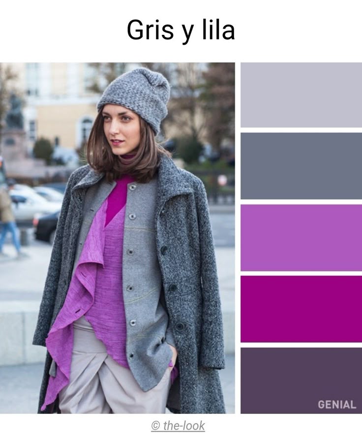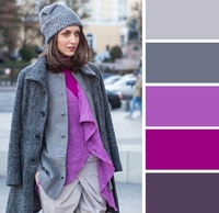 Серебряная гамма и фиолетовая гармонично смотрятся вместе. Такой дуэт добавит динамику в облик. Чтобы добавить нотки нежности, подберите комбинацию с сиреневым оттенком.