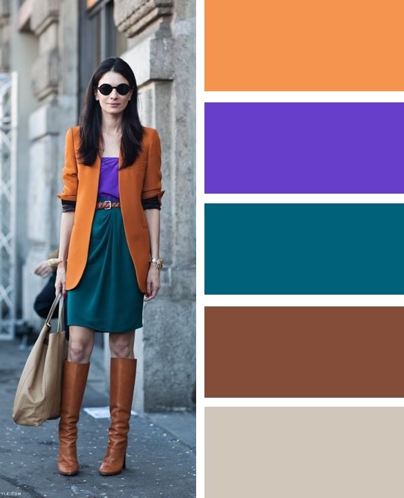 Металлик подходит к холодной гамме оттенков. Серебряная юбка-плиссе или другие предметы одежды этого оттенка, хорошо сочетаются с красными, фиолетовыми, зелеными и синими тонами.
