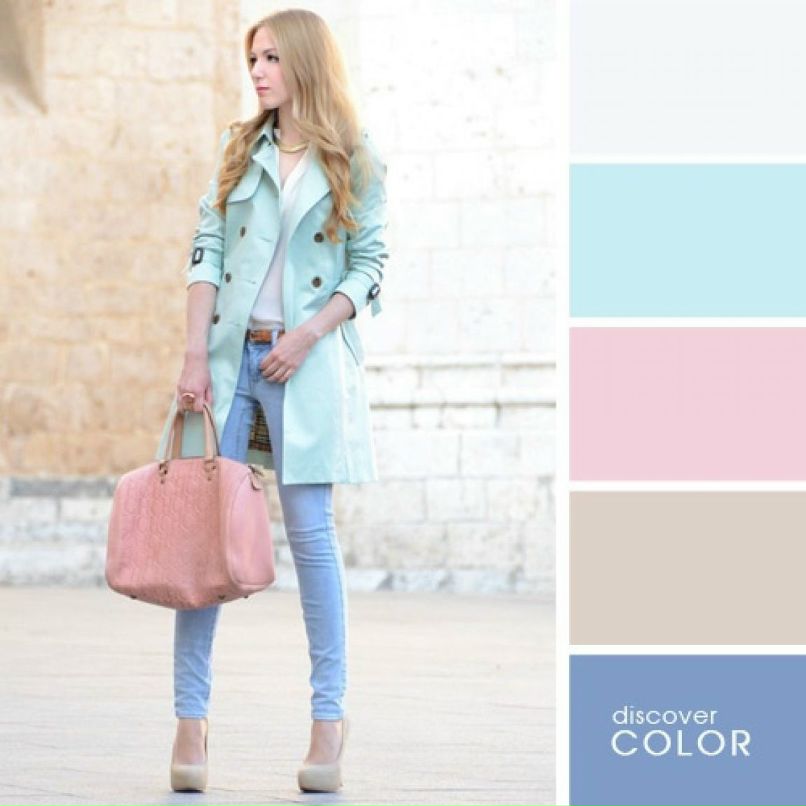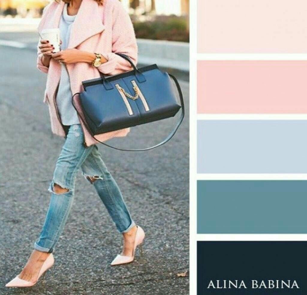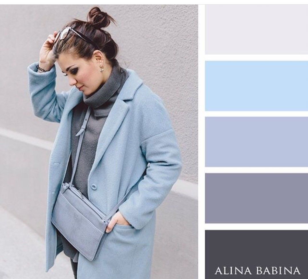 Универсальным считается тандем с синей палитрой. Оба варианта относят к холодным тонам, гармонично дополняющим друг друга. Голубые оттенки одежды подойдут для повседневного, торжественного и делового лука.