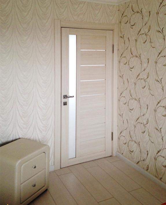Полотна могут не иметь финишную отделку. В этом случае их нужно будет покрасить самостоятельно, учитывая, что и качество, и оттенок краски для дверных элементов и покрытия стен должны быть идентичными. Как вариант — оклеивание полотен такими же обоями, как и на стенах.