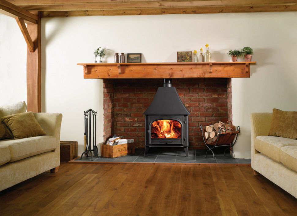 Поскольку такой вид отличается мощностью, его устанавливают в больших помещениях. В целях безопасности камины стали дополнять дверцами: закрытый тип позволяет избежать риска возгорания.