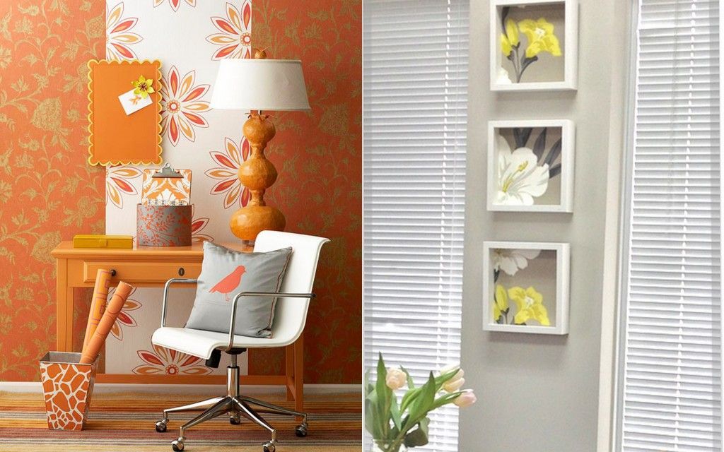 - Декор стен из фрагментов цветочных обоев: аппликация